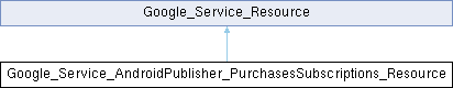 Typical usage is: $androidpublisherService = new Google_Service_AndroidPublisher(...); $subscriptions = $androidpublisherService->subscriptions;