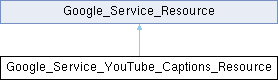 Typical usage is: $youtubeService = new Google_Service_YouTube(...); $captions = $youtubeService->captions;