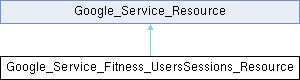 Typical usage is: $fitnessService = new Google_Service_Fitness(...); $sessions = $fitnessService->sessions;