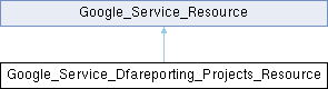 Typical usage is: $dfareportingService = new Google_Service_Dfareporting(...); $projects = $dfareportingService->projects;