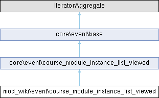 The mod_wiki instance list viewed event class. More...