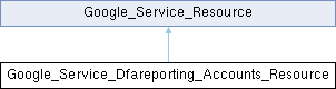 Inheritance diagram for Google_Service_Dfareporting_Accounts_Resource: