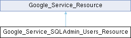 Typical usage is: $sqladminService = new Google_Service_SQLAdmin(...); $users = $sqladminService->users;