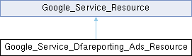 Typical usage is: $dfareportingService = new Google_Service_Dfareporting(...); $ads = $dfareportingService->ads;