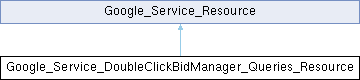 Typical usage is: $doubleclickbidmanagerService = new Google_Service_DoubleClickBidManager(...); $queries = $doubleclickbidmanagerService->queries;