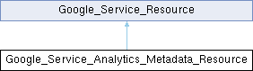 Typical usage is: $analyticsService = new Google_Service_Analytics(...); $metadata = $analyticsService->metadata;