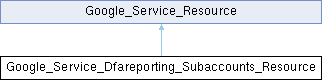 Typical usage is: $dfareportingService = new Google_Service_Dfareporting(...); $subaccounts = $dfareportingService->subaccounts;