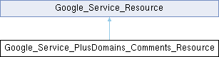 Typical usage is: $plusDomainsService = new Google_Service_PlusDomains(...); $comments = $plusDomainsService->comments;